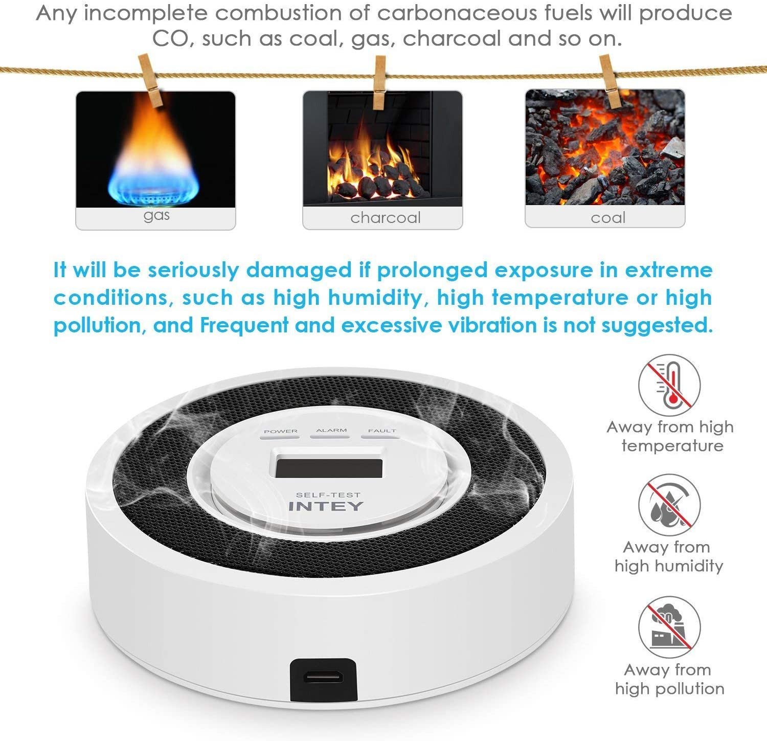 HIGH QUALITY: INTEY carbon monoxide detector has been certified by CE and ROHS to ensure your safety.
