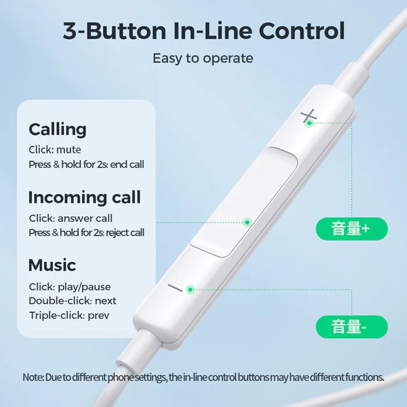 The 3-button in-line control makes it easy to operate your music and calls, while the concealed microphone ensures a high-definition calling experience.