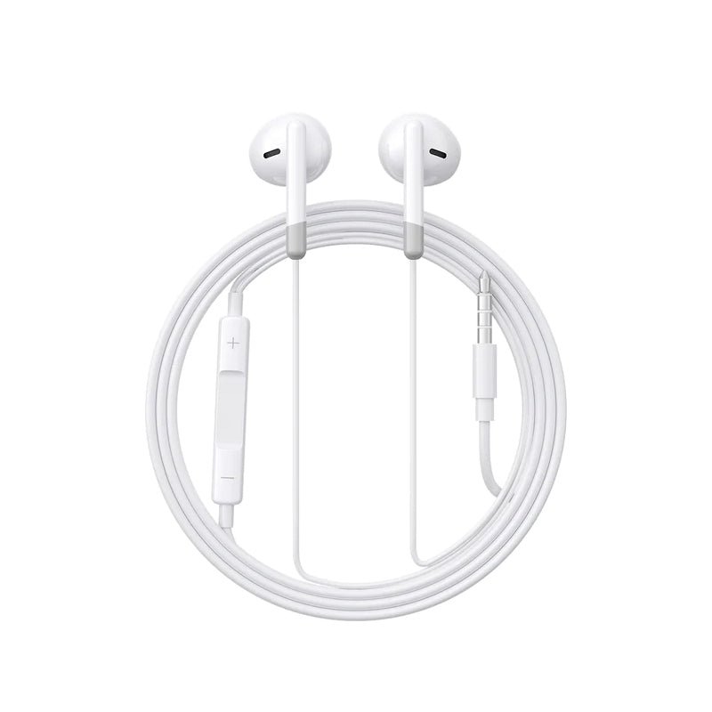 The earphones feature a 3.5mm metal plug, providing wide compatibility with most devices and a plug-and-play setup.