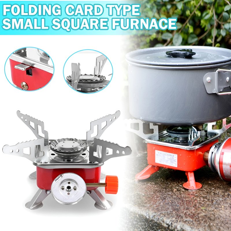 The K-202 Mini Portable Foldable Card Type Square Stove is designed for outdoor enthusiasts and travelers.