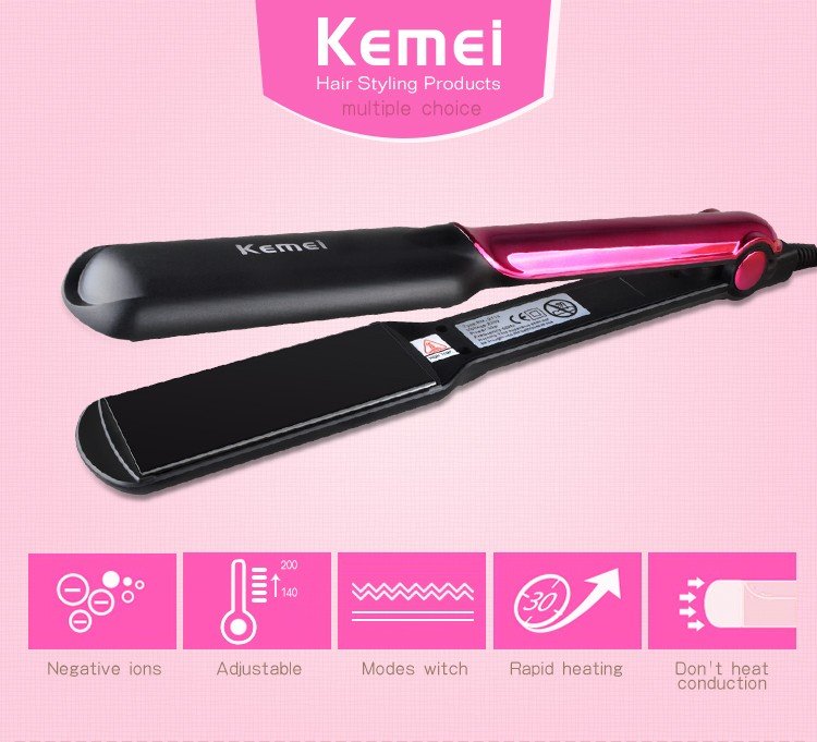 Kemei KM-2113 Hair Straightener Ceramic Flat irons Straightening Iron Curling Corn Wave Board Negative Ions Curler straightening Features:Simple on-off switch for easy operation Long working life and stable performance Equipped with ultra-smooth ceramic tourmaline plate, professional material for hair straightener and reduces harm to hair.Rapid heating up in seconds. Fast warm-up and good thermal performance.220 – 240V global voltage, suitable for use in various countries around the world.