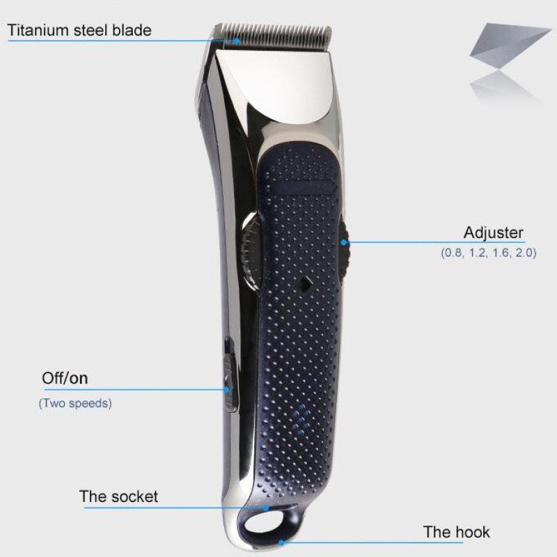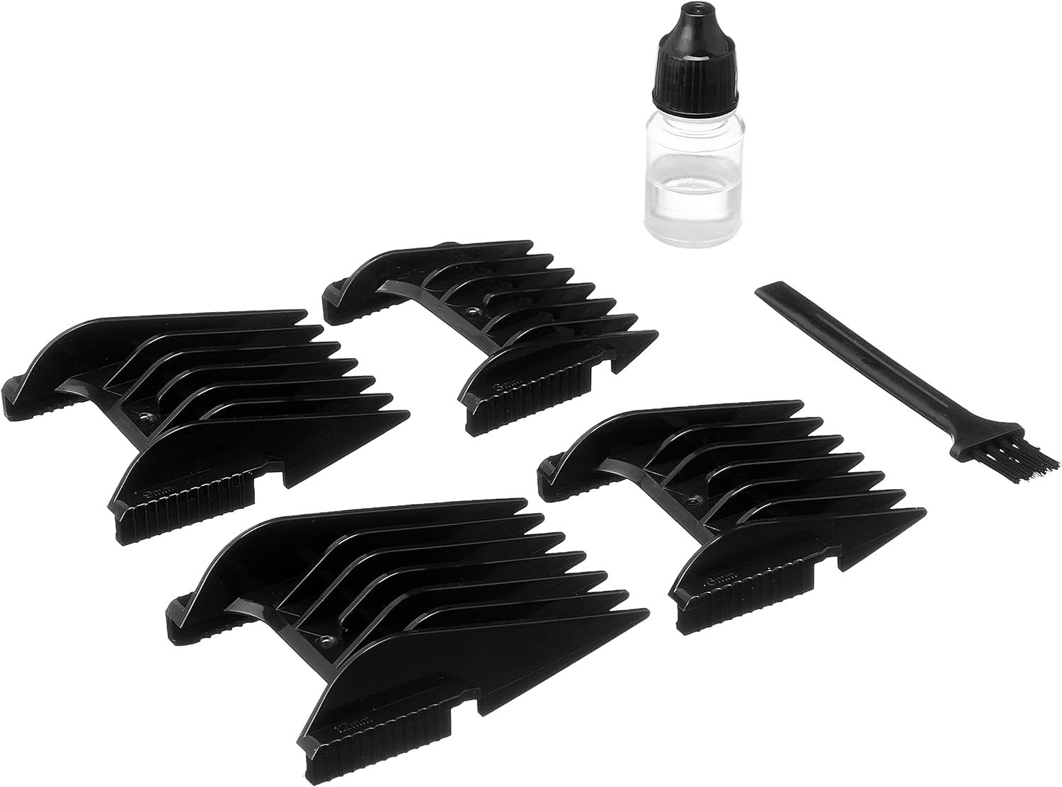 The KM-5020 comes with an adjustable hair-cutting limit comb (0.8-2mm) and four limit combs (3mm, 6mm, 9mm, and 12mm),