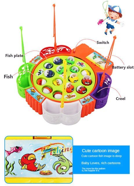What’s in the box: 1 Fishing plate, 1 Fishing pond, 2 Fishing Rods, 15 Fishes