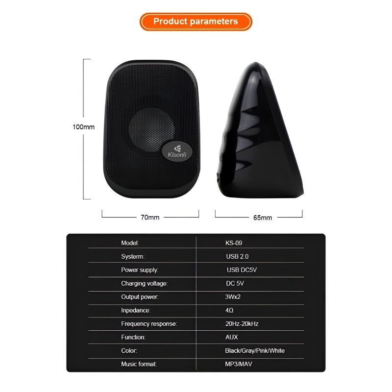What’s in the box: 1 × Pair of Kisonli KS-09 USB 2.0 Speakers (Left & Right)