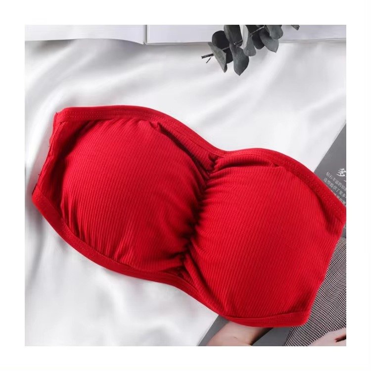The new threaded one-line tube top, anti-glare sexy gathering, one-piece strapless bottoming underwear with chest pad;