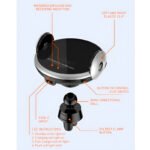 The 360-degree adjustable rotation with a spherical positioning column design allows for flexible viewing angles, making navigation easier. Equipped with 15W fast wireless charging, it supports multiple output levels (5W, 7.5W, 10W, and 15W) and a USB-C input for efficient power delivery (5V/2A, 9V/2A, 12V/1.5A, 18W).