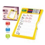 The board is equipped with cards with the written alphabet, which are placed inside the board, the letters are visible thanks to the transparent surface.
