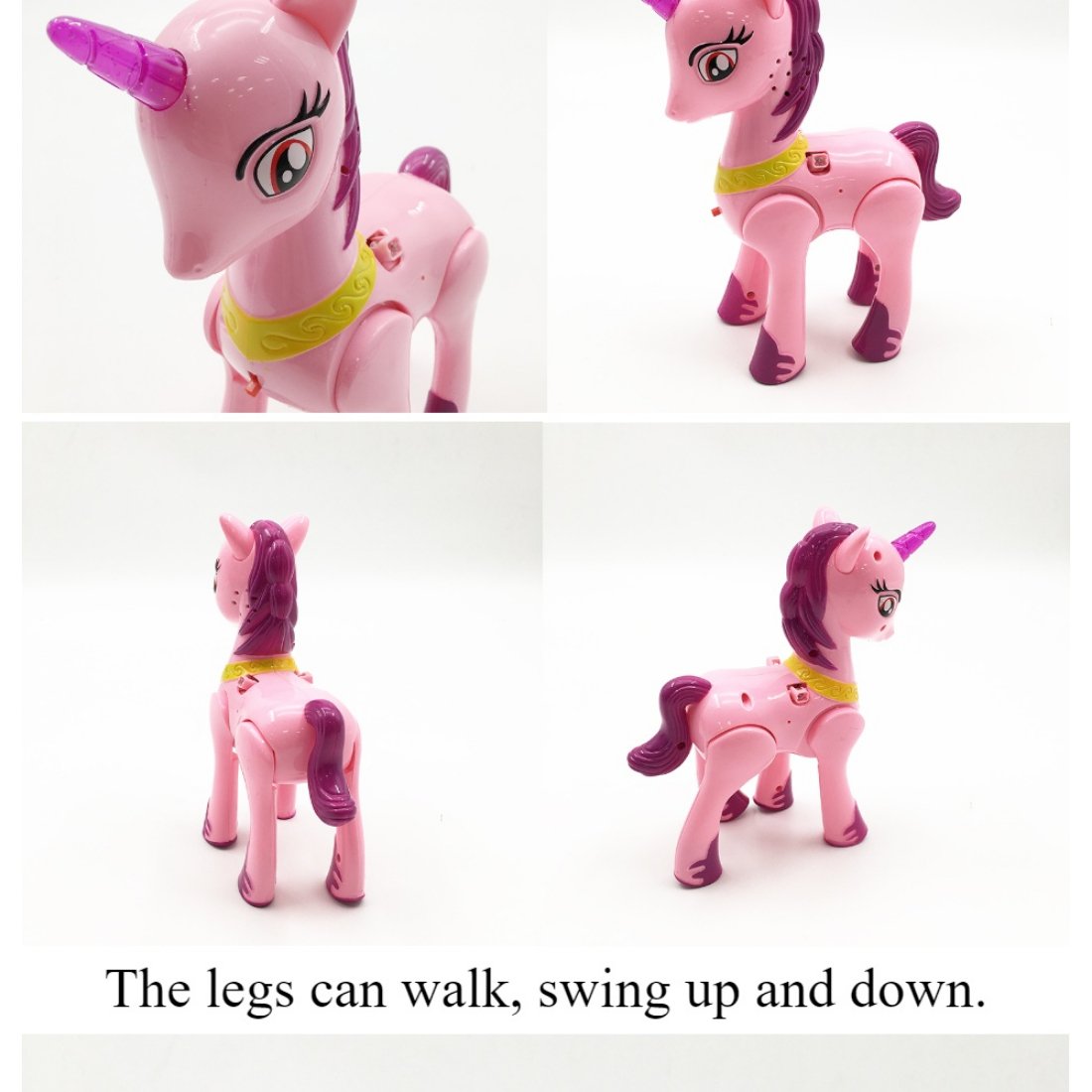 The legs can walk, swing up and down.