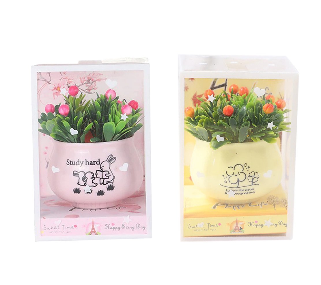 Lovely Simulation Green Rose Bonsai Plant Small Potted Garden Small Ornament Set Room Decoration