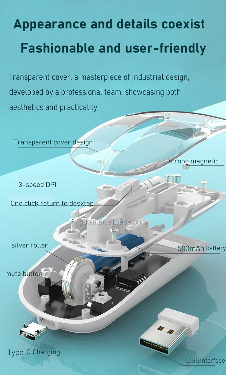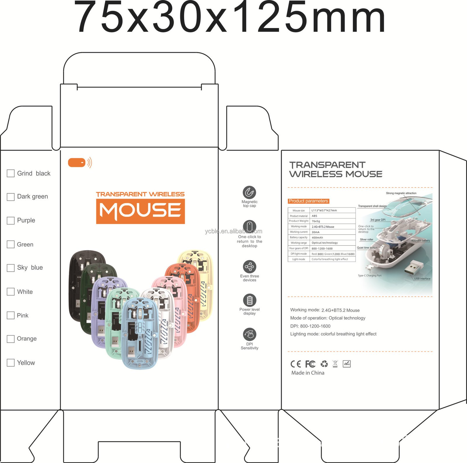 - The appearance of the fully transparent mouse design is beautiful and fashionable, with a variety of colors to choose from.