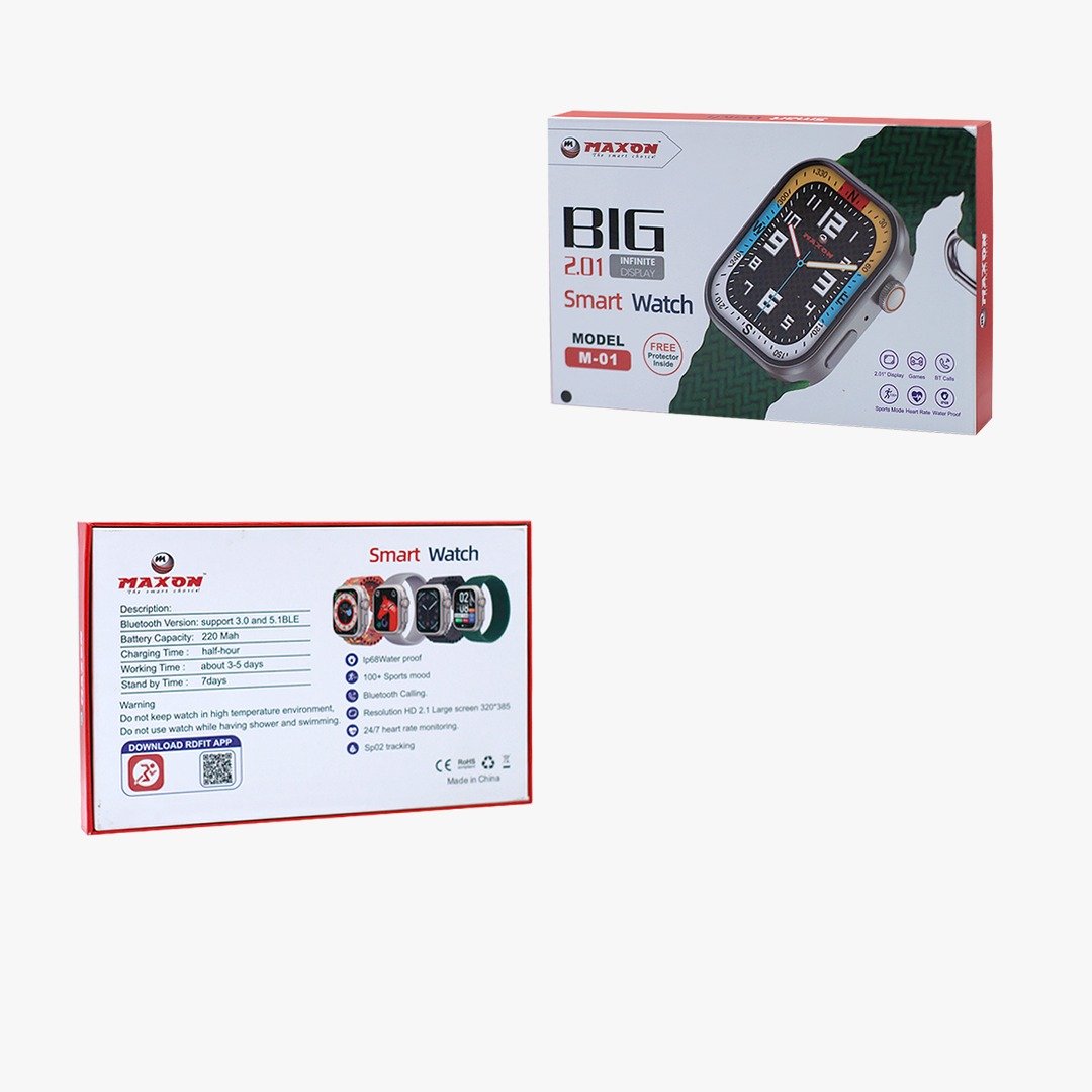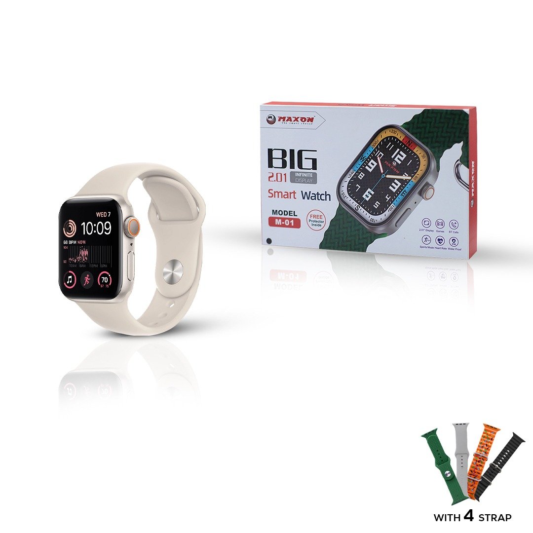 M-01 Smart 2.01″ Infinite Display , Uninterrupted connectivity through Bluetooth Calls, Fitness routines with SP02 monitor and 100+ Sports Mode. Track your heart rate with a Heart Monitor. Battery Life up to 5 days with battery backup on Bluetooth calling for 2 days and standby mode for 5 days. 500+ watch faces to customize your style. Water Resistant – IP68 standard for seamless indulgence in worry-free activities. Comes with 4 stylish yet comfortable straps,