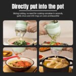 Directly Put Into the Pot: shot-cut slicing, no need for a container to cook in seconds, the garlic slices and chili rings are even and beautiful.