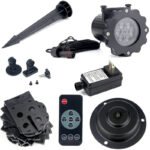 What’s in the box: 1 x Light Projector, 1 x Pack of 16 Patterns, 1 x Adapter, 1 x Ground Stake, 1 x Mounting Plate, 1 x Support Frame, 1 x Remote Control, 1 x Manual