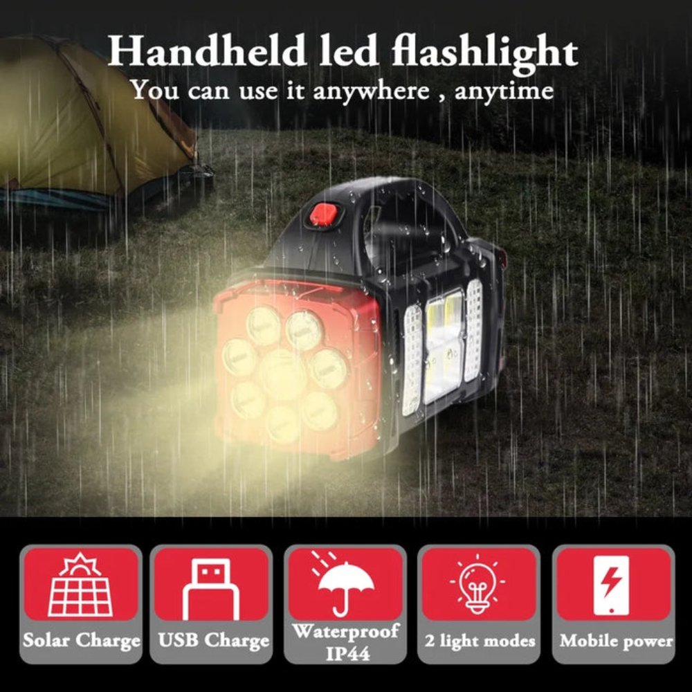Multi-light design: long-range illumination, smart switch, water-resistant, smart USB charging, fast charging, handle design, durable and sturdy.