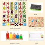 This Learning Board has two sides, one side is math, another side is black board where kids can write on it.