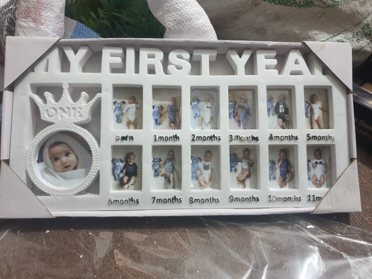 - MY FIRST YEAR PHOTO BABY KEEPSAKE FRAME– PHOTO MEMORIES- The picture frame holds 12 pictures, one for each month of that first year, to help you remember