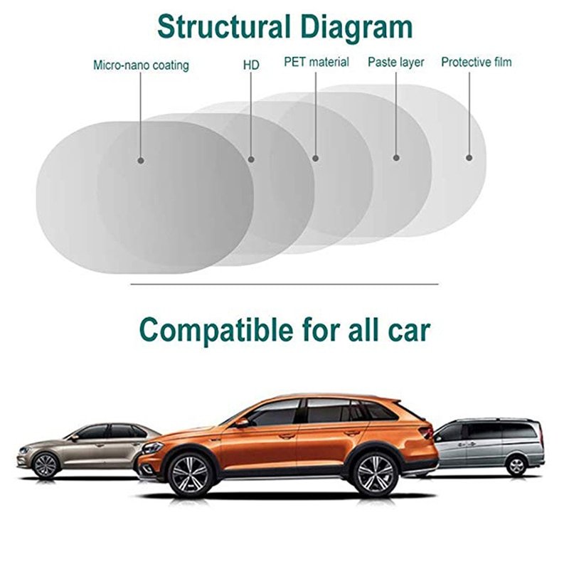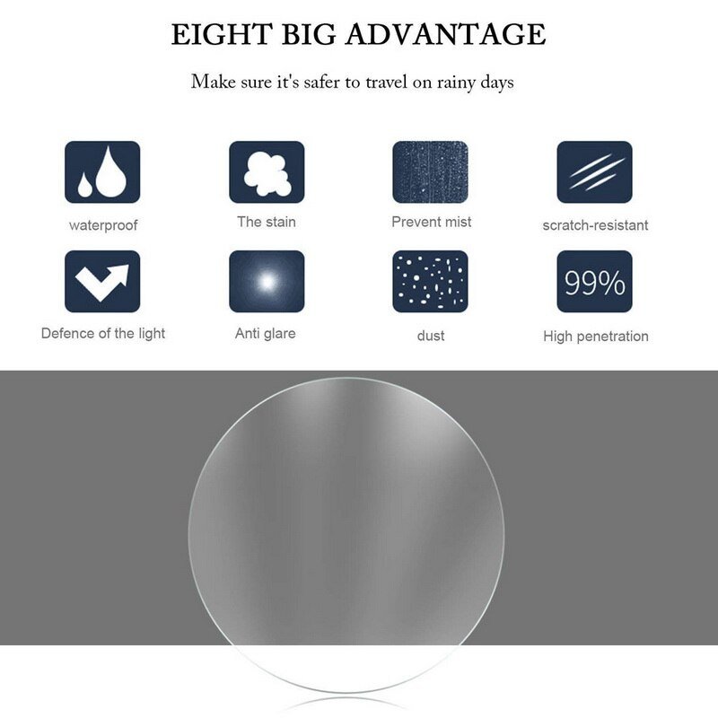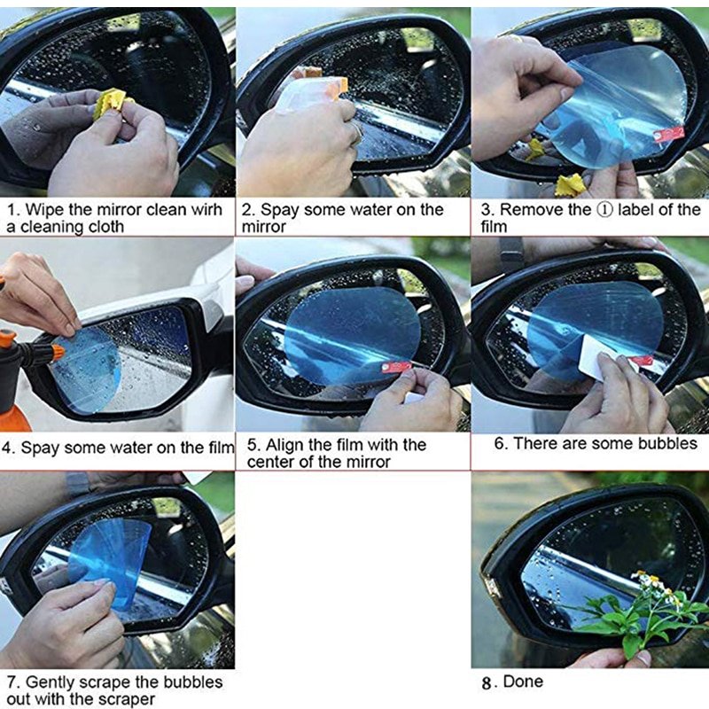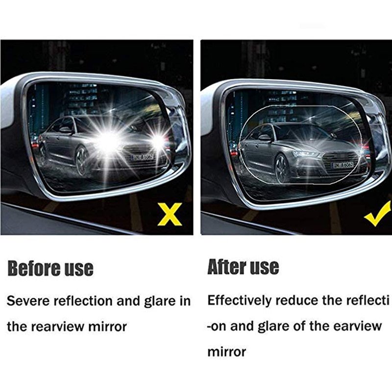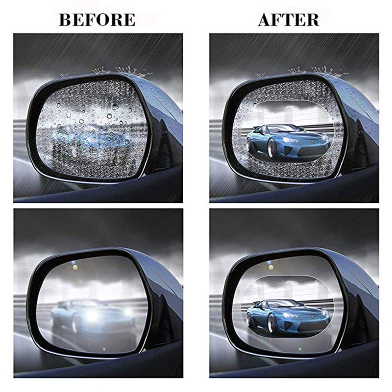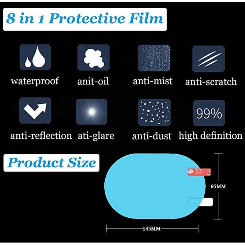 Made of PET and Nano coating protective film with high transmittance, anti-fog, anti-mist, waterproof and rainproof, which protects your driving safety and effectively in a rainy or foggy day, so as to keep your rear-view mirror clear all the times.
