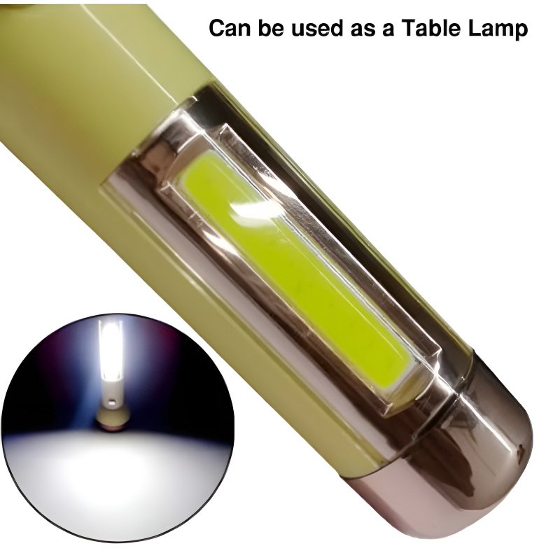 This versatile 2-in-1 flashlight seamlessly switches between a powerful COB floodlight and a focused LED beam, offering adaptable brightness for outdoor adventures and emergencies at home.