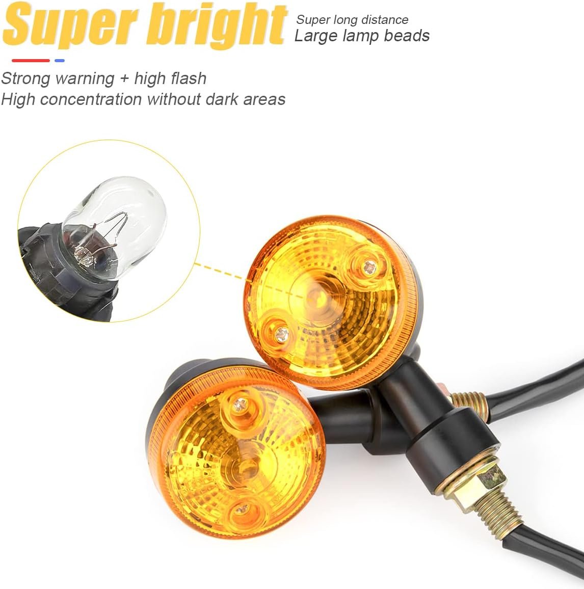Pack of 4 Universal Motorcycle Turn Signal Indicators | Amber Isharay Lights | Round Fit for 70cc & 125cc Bikes