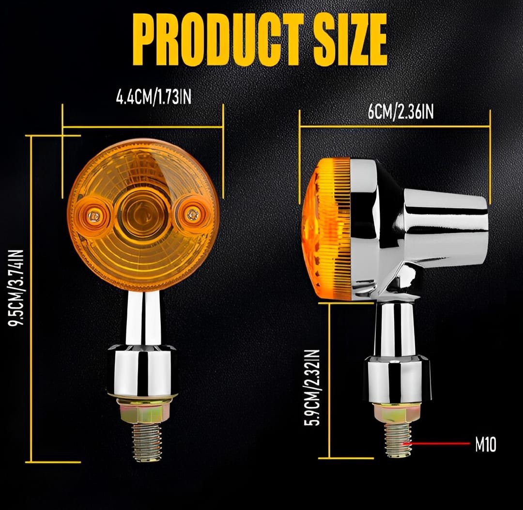 Upgrade your bike with high-quality amber turn signal indicators (Isharay Lights), designed for a universal fit on all motorcycle models including 70cc and 125cc. These stylish round indicators not only enhance safety with bright visibility but also add a custom look to your ride. Perfect for bike lovers who enjoy modifications and fancy accessories. Durable, easy to install, and ideal for both city rides and long trips.