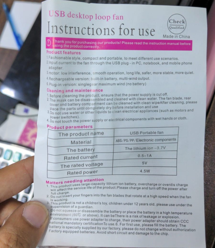 Rechargeable: this desk fan is rechargeable and can be used for a long time. it is very convenient to use, and it is also very convenient to carry.