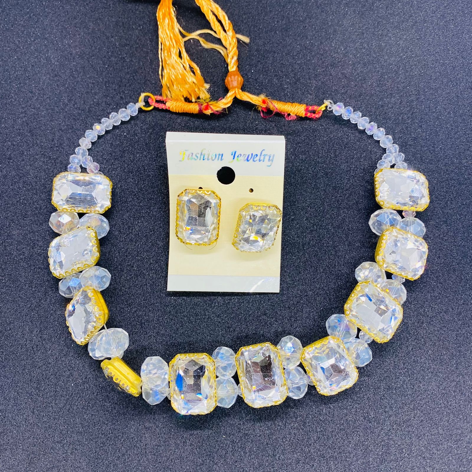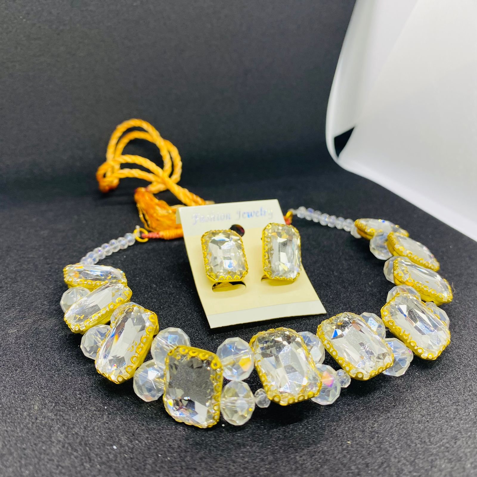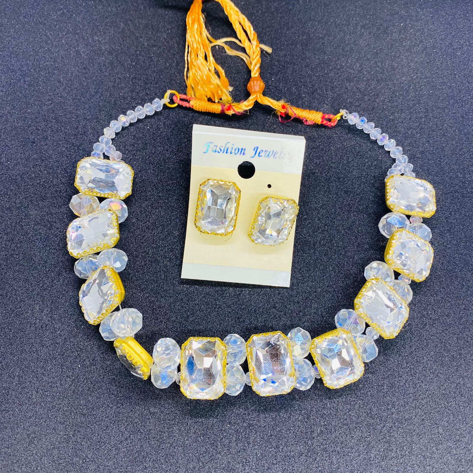 Premium quality crystal white stones chokers necklace with earrings set gift for girls