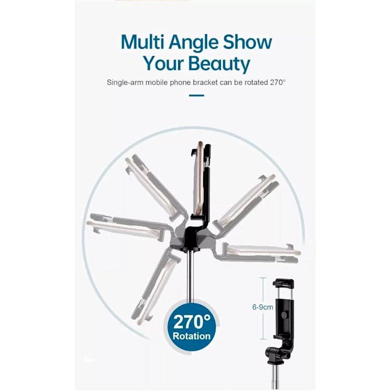 The R1-L Bluetooth Selfie Stick Tripod is a 3-in-1 photography essential, combining a selfie stick, tripod, and phone stand for versatile shooting. Made from durable aluminum and stainless steel, it’s lightweight (265g) yet sturdy, with a non-slip, widened base for stability.