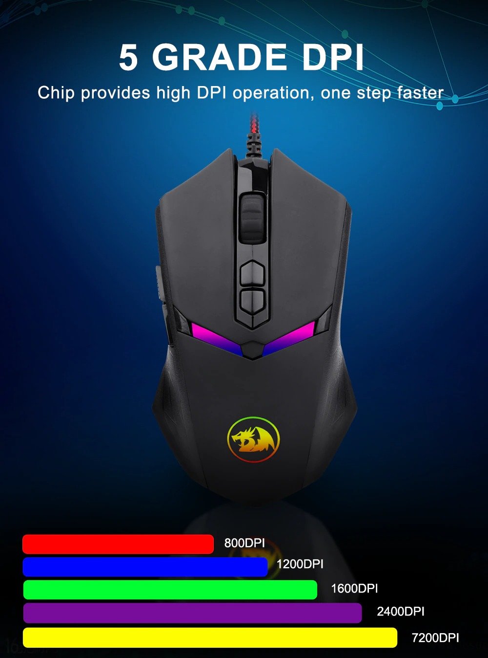 Redragon NEMEANLION 2 M602 USB Wired Gaming Computer Mouse 7200 DPI 6 Buttons RGB