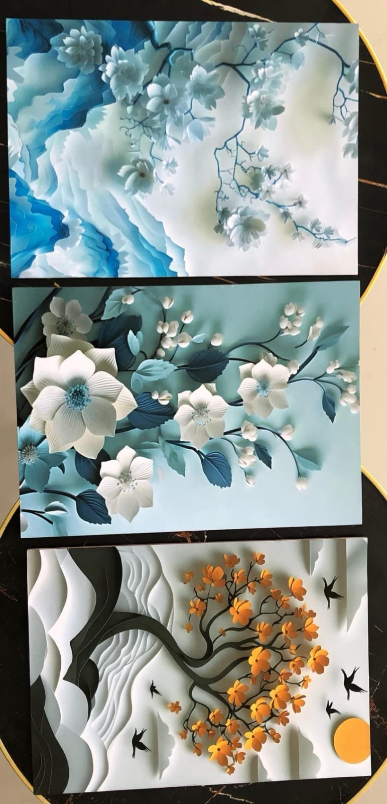 Set Of 3 Flower Tree Art Wooden Frames For Wall Decoration / Sticky Photo Tile