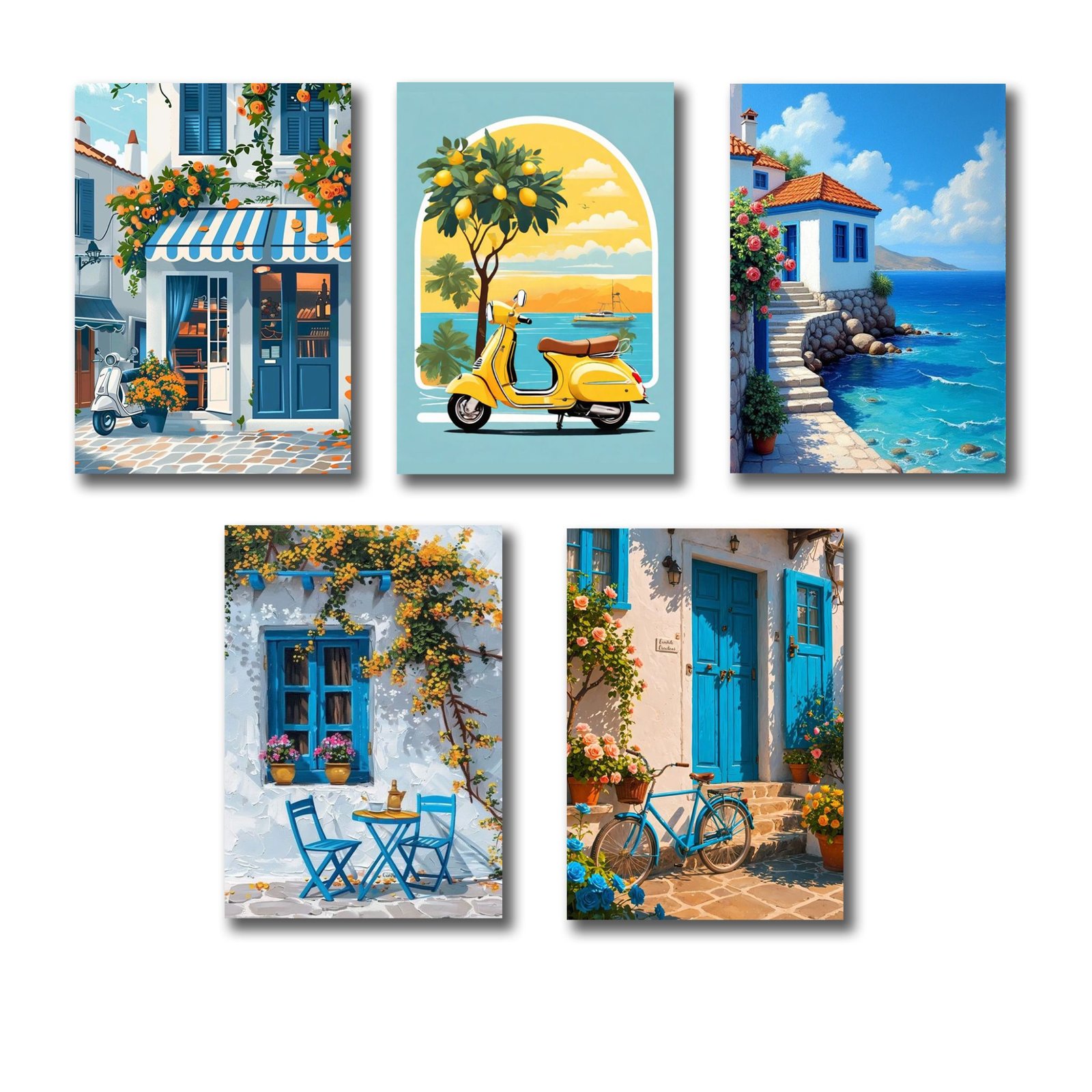 Set of 5 Italian Vintage Homes Art Themed Wall Art Wooden Sticky Phototile Frames for Wall Home and Girls Room Decoration