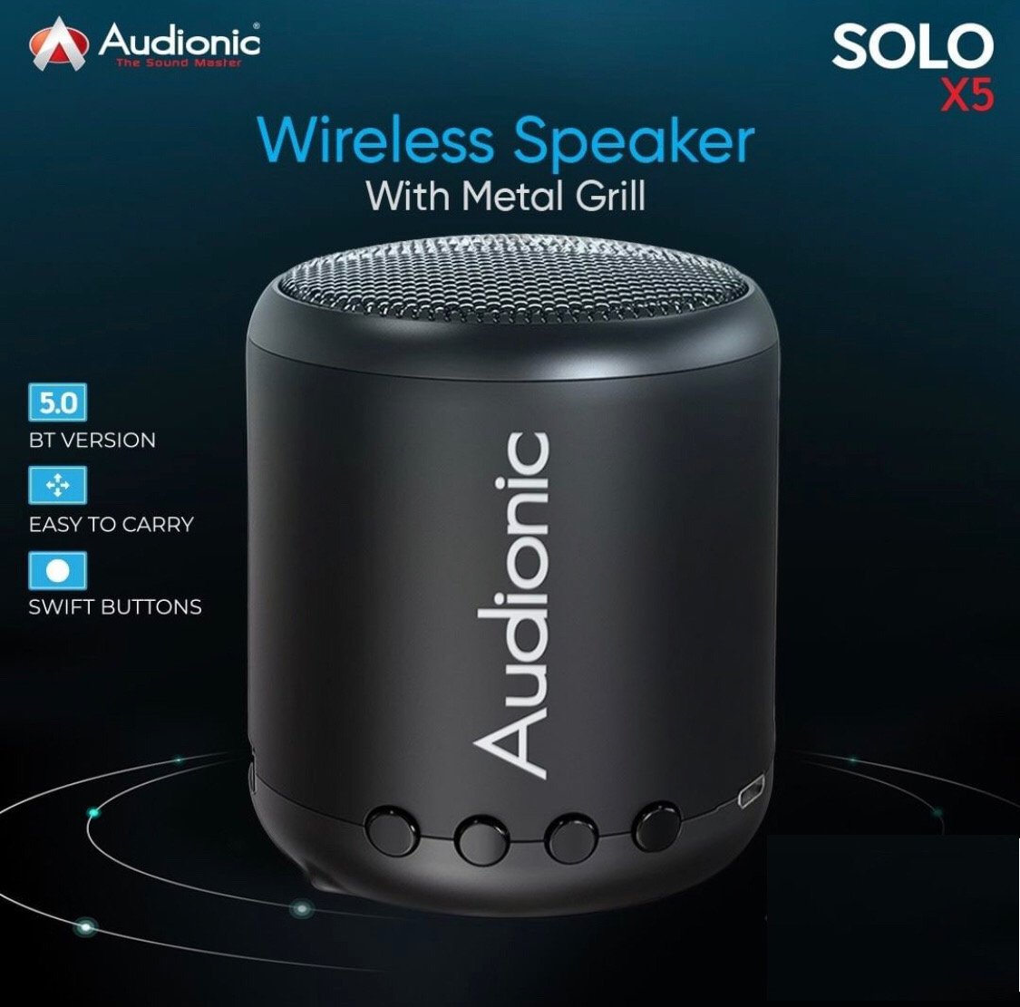 Solo X-5 is the newest most creative launch which is one of the best wireless speakers with a metal grill. It is an elegant speaker that has HIFI sound with deep bass as this speaker is best for personal use, “the great entertainment partner”. The solo X-5 portable speaker has the right frequency that will give you a very good sound and will satisfy your music taste. It has an attractive-looking small body that is easy to carry because of the lightweight structure with a drive unit of 52mm. Along with that, the sophisticated design of the solo X-5 has swift buttons as well that will let you operate it easily.
