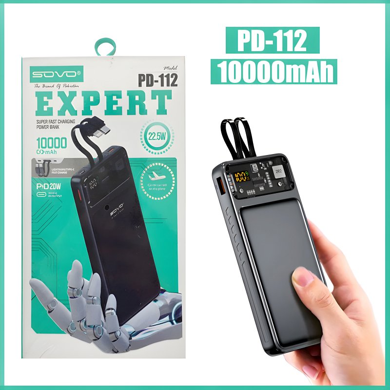 SOVO Expert PD-112 10000mAh Super Fast 22.5W Portable Charger Power Bank, your ultimate travel companion. Designed with Type-C Input/Output compatibility, this power bank ensures seamless connectivity for all your devices, wherever you are.