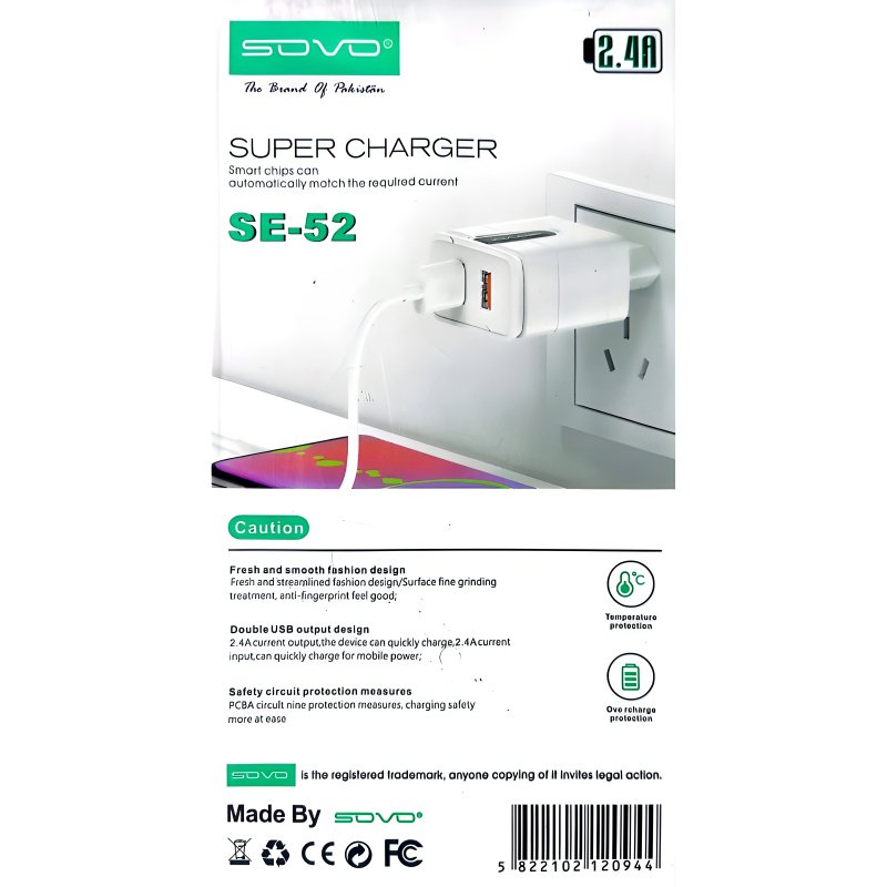 High Amperage Output: The SOVO Lexus 2.4 Amp charger provides a substantial current output, facilitating efficient charging for smartphones and various mobile devices.