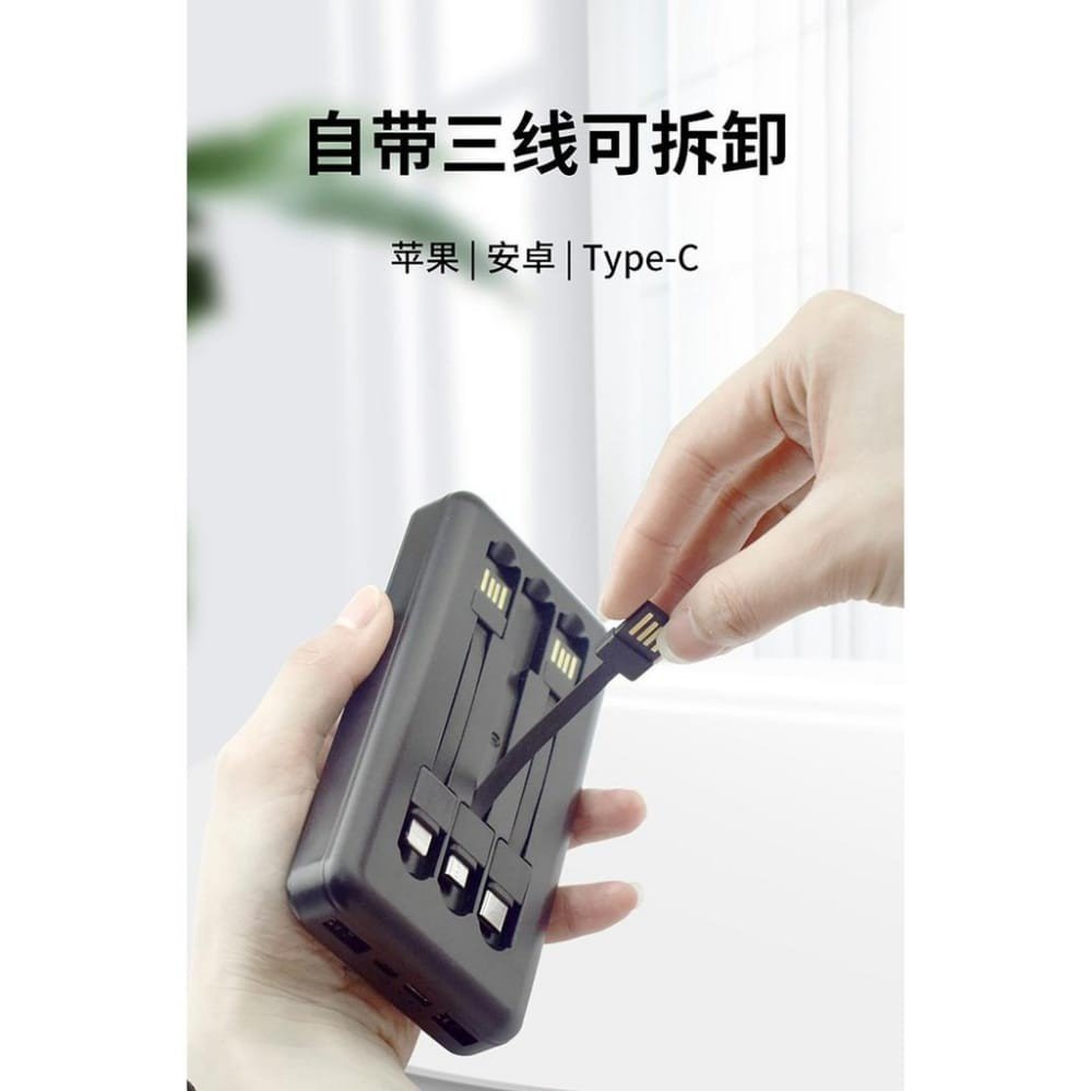 2 in 1 Power Bank with 3 Cable, don’t be afraid to bring the power bank but forget to bring the charging cable.