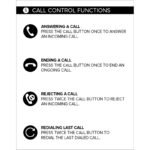 Charging requires the headset to be turned off before charging, and it should not be used while charging. Call controls include answering or ending a call with a single press of the call button, rejecting a call with two presses, and redialing the last call with two presses.