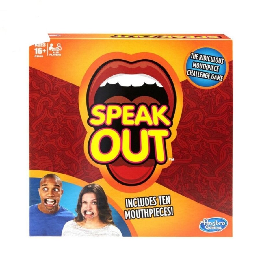 The Speak Out game brings friends and family together for laugh-out-loud fun as players try to say different phrases while wearing a mouthpiece that won’t let them shut their mouth.