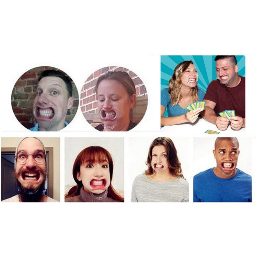 In the Speak Out game, players draw from the deck and read the phrase as best as they can, but it’s not so easy to do when the mouthpiece is hindering them from forming words correctly.