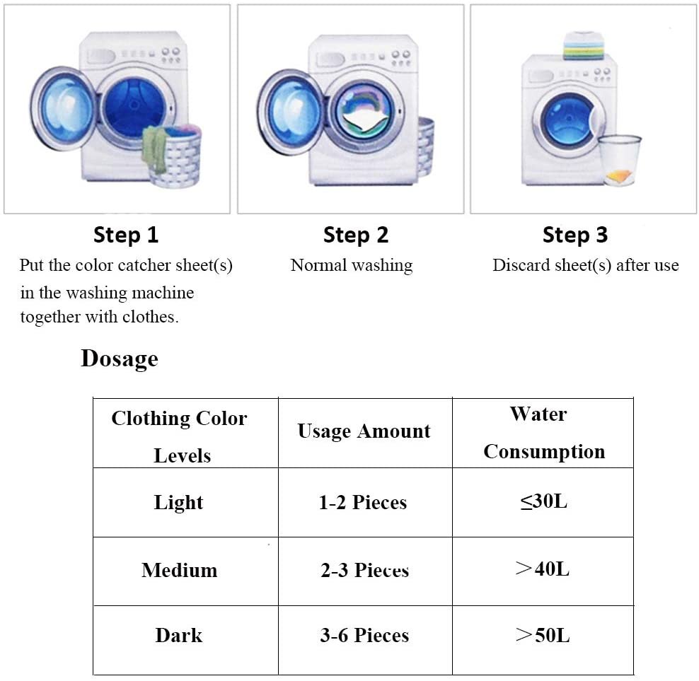 • Color Catcher sheets absorb and trap loose dyes in your wash water, to prevent dyes from running or bleeding onto other clothes.