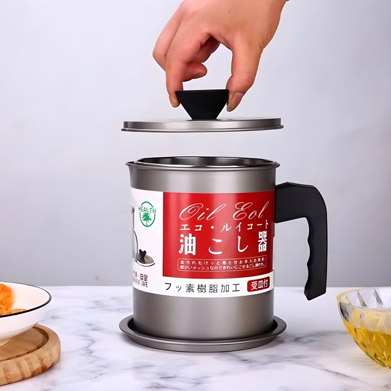 Introducing our premium Stainless Steel 1.4-Liter Cooking Oil Strainer Pot designed for seamless and efficient grease filtration.