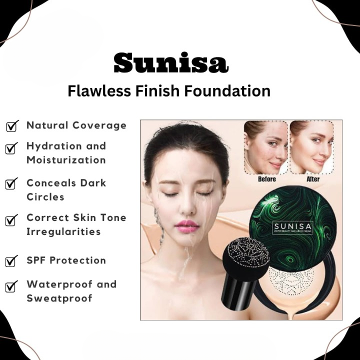 Sunisa 3 in 1 Air Cushion BB and CC cream foundation Waterproof Mushroom Head Air Cushion BB Cream Liquid Foundations CC Cream