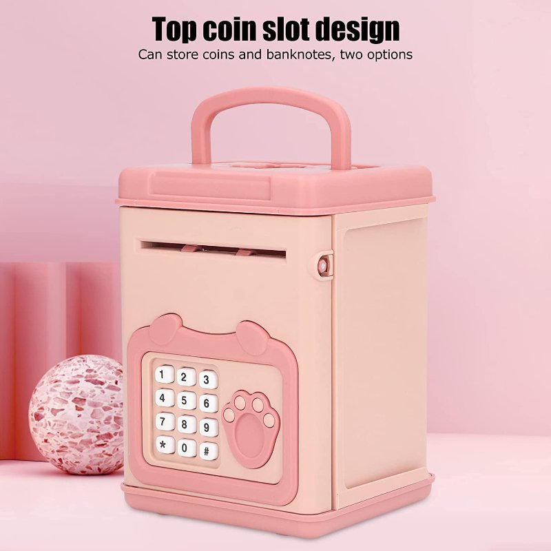Handle Design: The money bank handle design, is easy to carry, easy to carry, the initial password is 0000, the password will be restored to the initial password when the battery is too low.
