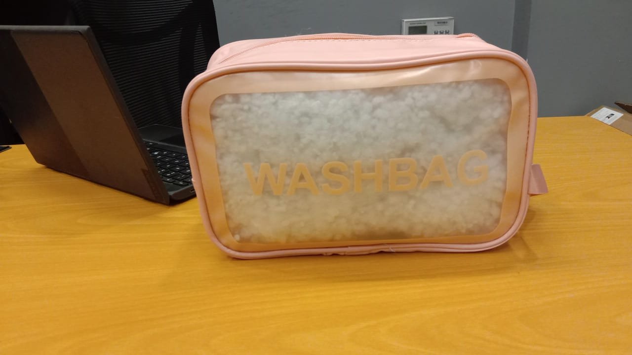- This Toiletry Cosmetic Pouch with transparent design has capacity