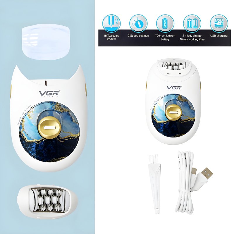 The VGR V-706 Professional Rechargeable Electric Lady Epilator offers effortless and precise hair removal with its 18 tweezers system.