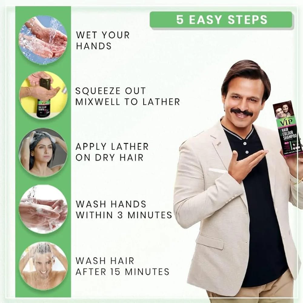 VIP Hair Colour Shampoo for Men and Women, 180ml,