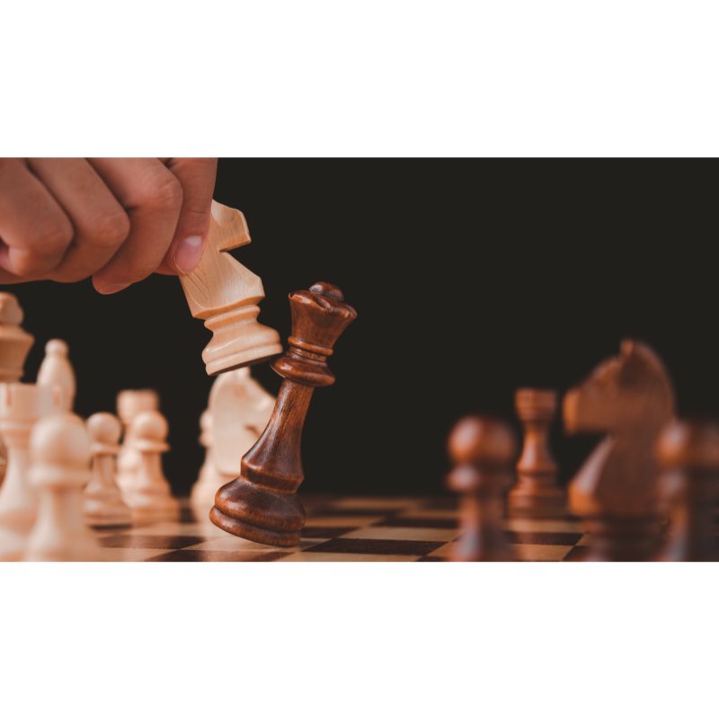 Each player has 16 pieces: 1 king, 1 queen, 2 rooks, 2 bishops, 2 knights, and 8 pawns. The goal of the game is to checkmate the other king.