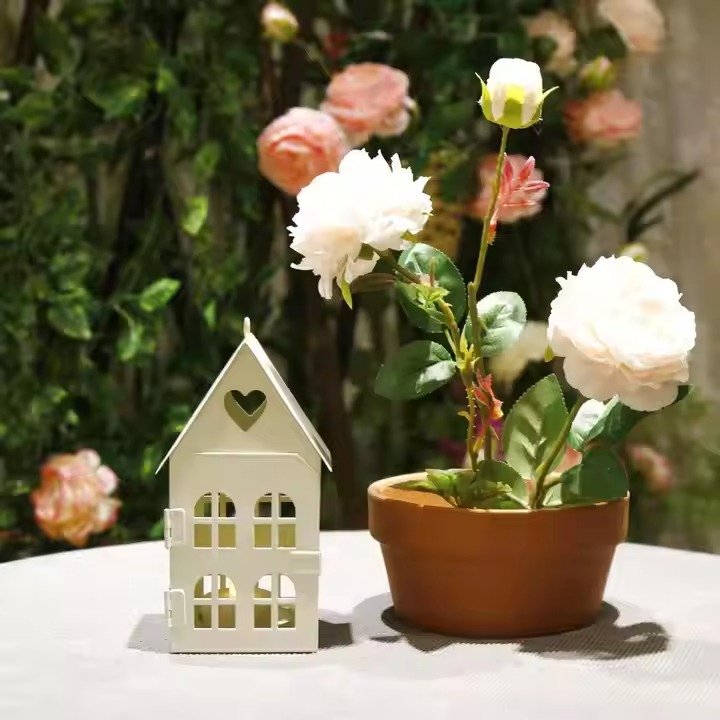 - white house design tea light candle holder small home decorative vintage metal lantern with heart pattern