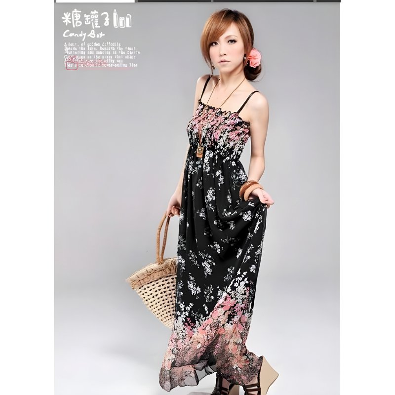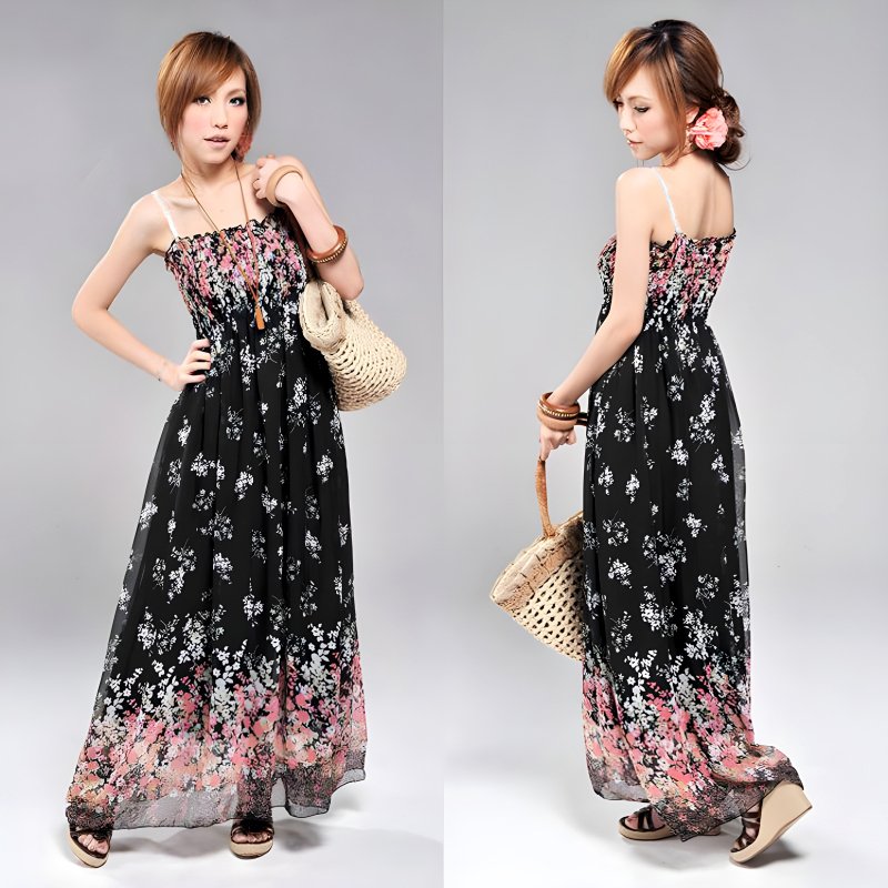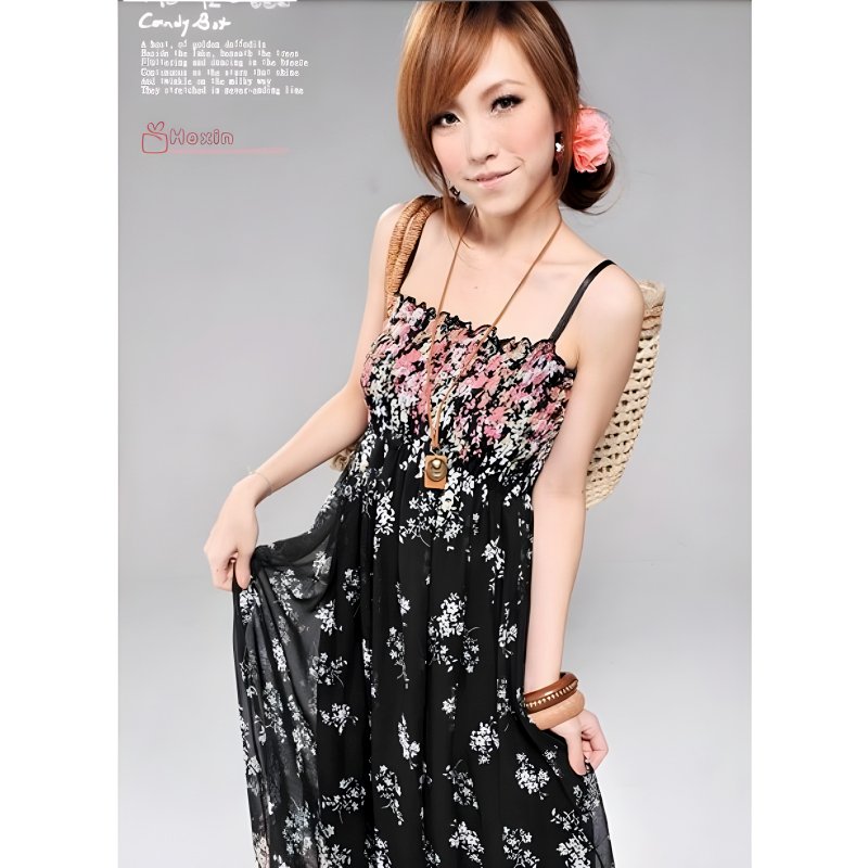 This dress features a stunning floral design on soft, breathable chiffon fabric, perfect for warm summer days.