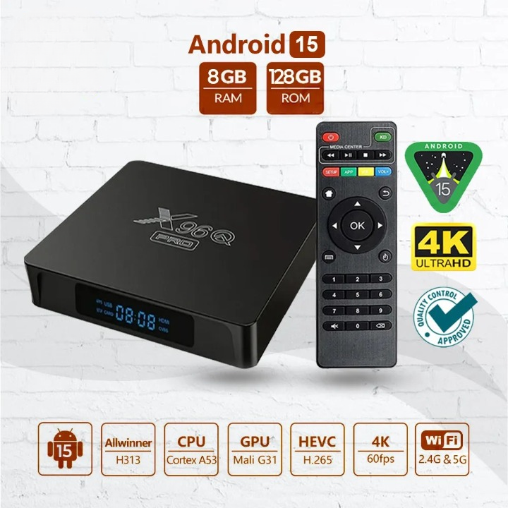 The X96Q Pro is a high-performance Android 15 TV Box, designed to enhance your home entertainment experience. With a Quad-Core processor, 8GB RAM, and 128GB storage, it delivers lightning-fast performance for streaming, gaming, and multitasking.